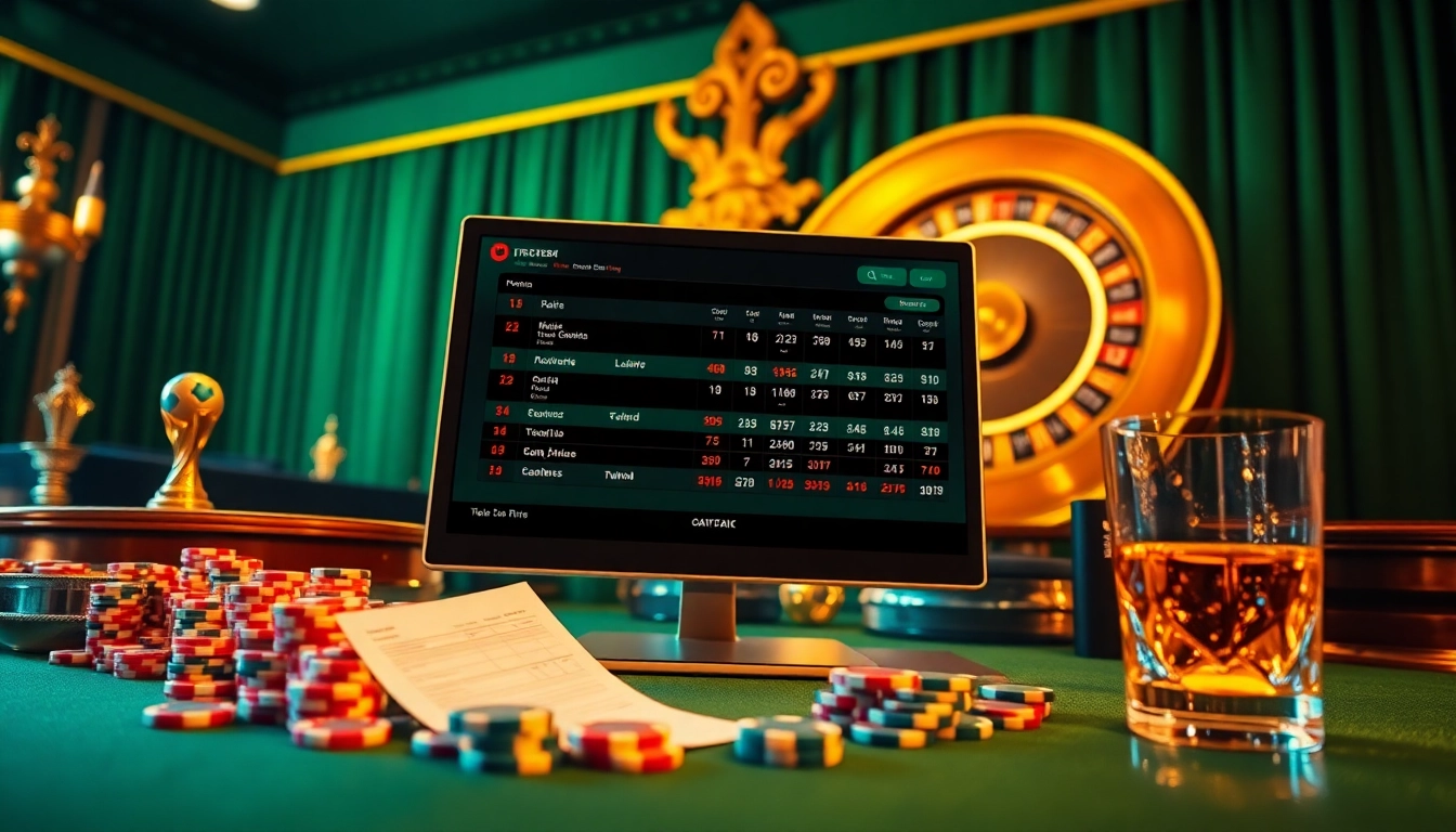 Engaging action of betting on แทงบอลโลก with a dynamic online betting interface and vibrant casino elements.