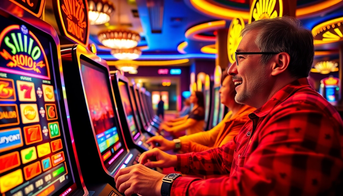 Experience excitement at slot777 with vibrant machines lighting up the casino.