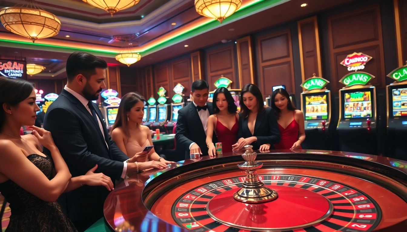 Sodocasino players engaging in an exciting roulette game, vibrant casino atmosphere.